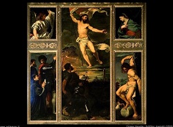 L’umanità è riscatta da Cristo Risorto che si impone su un cielo albeggiante. Il buio della notte è vinto dalla luce eterna. Il pennello di Tiziano nel polittico Averoldi diviene strumento di lode a Dio ed esaltazione del Kerigma. Lo storico dell’arte, Rodolfo Papa: